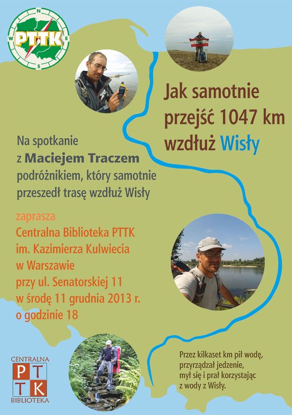 Zapraszamy do Centralnej Biblioteki PTTK, gdzie w najbliższą środę (11 grudnia) bałtycki długodystansowiec Maciej Tracz opowie o swojej tegorocznej wyprawie wzdłuż Wisły.