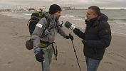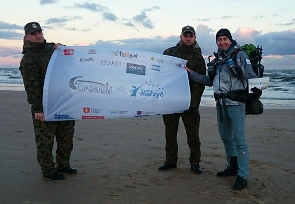 Na granicy polsko - rosyjskiej funkcjonariusze Morskiego Oddziału Straży Granicznej powitali w czwartek Rafała Dadeja, który przed dwoma tygodniami wyruszył z granicy polsko - niemieckiej i przez dwa tygodnie szedł plażą wzdłuż wybrzeża Bałtyku. Pokonał przeszło pół tysiąca kilometrów.