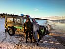 Noc była ciekawa. Namiot rozbity z dala od wody, okazał się niebezpiecznie do niej przybliżyć, a raczej ona do niego. Okazało się nad ranem, że fale dochodziły na tyle blisko, iż najdłuższe sięgały raptem metra od niego. Do tego zerwał się na tyle silny wiatr, że wyrwał zewnętrzne szpilki, co sprawiało wrażenie, że zaraz cały odleci. Wolałem nie ryzykować i przed szóstą zadzwoniłem do ekipy w Patrolu, by przestawili samochód i zakryli mnie przed wiatrem.