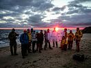 Dwie noce tak blisko domu, a jednak na plaży. Psychice to nie pomaga... Do tego plaża w Mechelinkach nie należy do szerokich i rano okazało się, że fale miałem znów mniej więcej pół metra od namiotu. Ale za nim się o tym przekonałem wyrwał mnie ze środka Gajowy z Kubą Free, czyli pierwsi z ekipy gdyńskich ratowników WOPR. Wiedziałem, że będą silnym składem, ale tylu osób się nie spodziewałem.